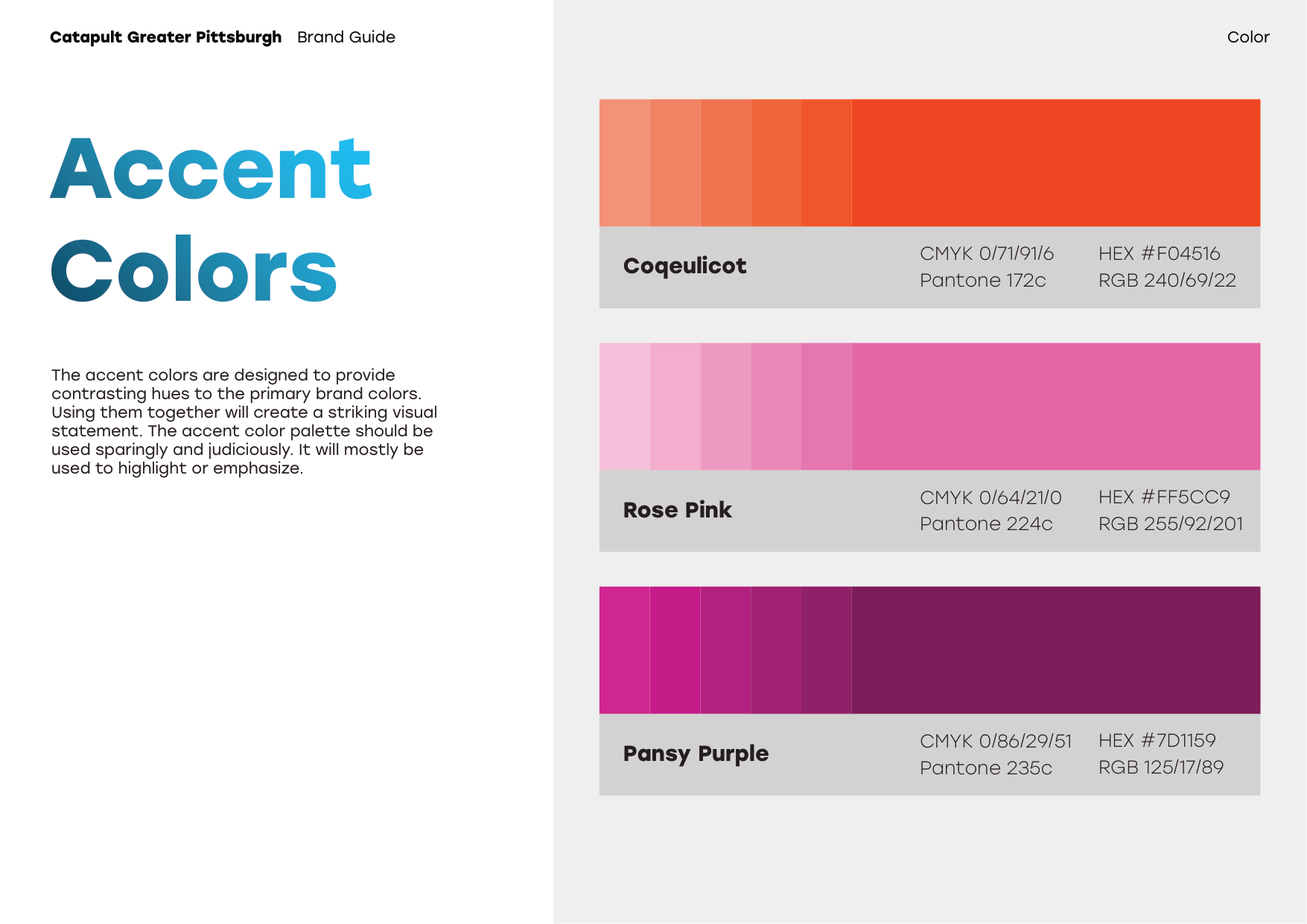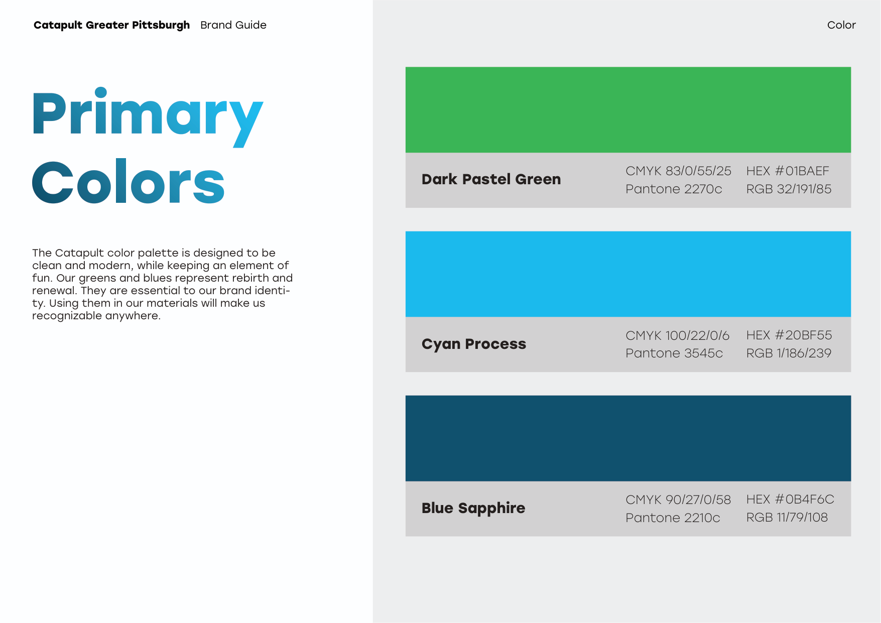 While working at Fireman Creative, my team and I collaborated with Catapult Greater Pittsburgh to create their brand identity, including a new logo that represents the spirit of their organization. From there, we designed and built their website using eye-catching visuals and easily accessible information.